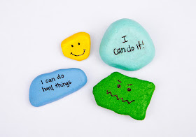 The first thing that came to my mind was to paint a little rock and either write a message or paint a smiley face on it. The child can put it in their pocket as a little reminder. That way anytime they start to feel sad, frustrated or homesick they can rub their pocket and be reminded that they "can do hard things". To make the rocks I used acrylic paint and then a small black sharpie marker. Your child could easily make the rock themselves.